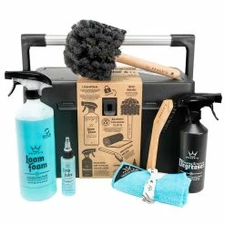 De Premium Bicycle Cleaning Kit van Peaty’s is zeker niet zomaar een mengsel van producten die in een emmer met een nieuw etiket zijn gegooid. Het bevat alle essentiële schoonmaakproducten in een hoogwaardige opbergdoos. Gemaakt van gerecycled plastic en met een stevige aluminium draaggreep, bevat deze kit alle essentiële producten die je nodig hebt om je motorfiets schoon van vuil en raceklaar te maken. Met een besparing van 10% ten opzichte van individuele aankopen is deze kit een zeer voordelige oplossing voor het opbergen van uw essentiële schoonmaakproducten.